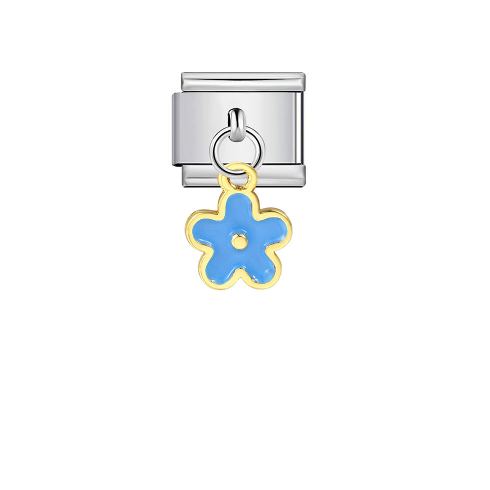 Blue Flower Pendant - Silver & Gold